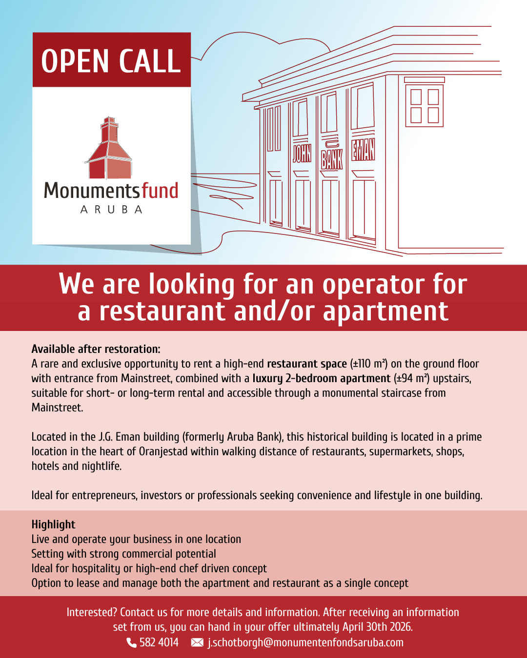 Monumentenfonds Aruba is opening the doors to a unique, high-end concept location in the historic J.G. Eman building.